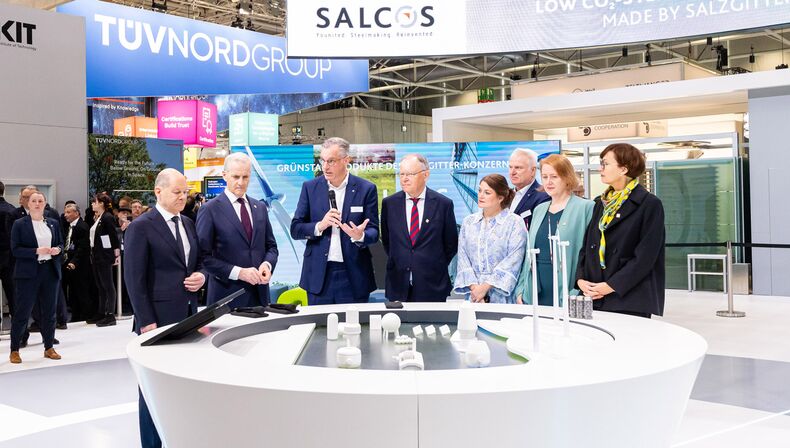 The Group's new proprietary green steel brand SALCOS® will also be presented to partners and fairgoers at the Hannover Messe. With the eponymous SALCOS® transformation program, the Salzgitter Group is incrementally converting its steel production to hydrogen-based processes with the aim of achieving virtually CO2-free steel production. Under the SALCOS® brand, the Group will be selling green steel products in future that meet defined criteria such as the extensive and sophisticated physical reduction of CO2. Consequently, the product brand is oriented to the system of the German Steel Federation, the proposals of which are supporting the development of green lead markets for climate-friendly products.