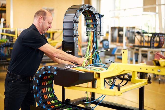 On specially designed cable trolleys TRUMPF receives the required cable and hose sets exactly as they are processed on site. No cable car is like the other: The equipment at LQ is exclusively equipped for orders and then goes directly to TRUMPF. Both the just-in-time delivery of complete systems and the just-in-sequence products play an important role in preventing standing lines. Short distances, reduced waiting times and search times for the right cable set are a thing of the past.