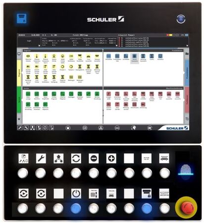 Whether it's a large press shop or a small stamping company, different Schuler machines are often brought together under one roof: from small stamping presses to transfer presses with coil line to press lines and blanking lines. Depending on the year of construction and the type of machine, they might all be equipped with a different control, which makes use difficult. For this reason, Schuler has developed a uniform appearance of both the visualization and the control panel for all its systems.