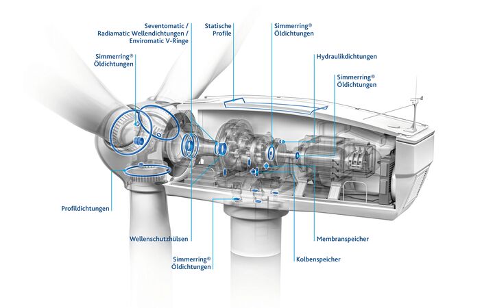 Other wind turbine components from Freudenberg, including globally-certified seals and pressure accumulators, also help these gigantic energy systems to operate efficiently and minimize unplanned maintenance by reducing pre-charge losses and accommodating pressures of up to 350 Bar or 5,000 psi.