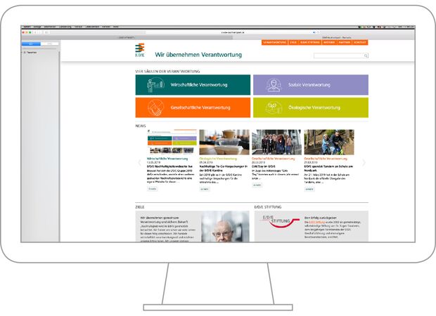The E / D / E Group deliberately decided to design its own website for this area instead of another printed sustainability report. In comparison, this solution is much more resource-efficient (paper, shipping, printing processes, CO2 emissions, recycling). In addition, sustainable activities should be published in a transparent, entertaining and above all up-to-date way.