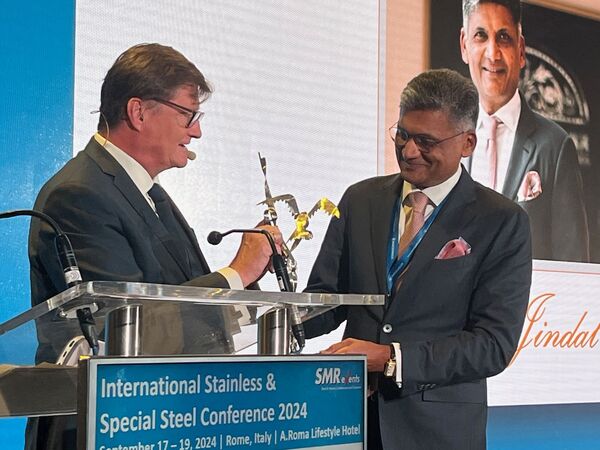 On the first day of the SMR Congress, held on September 17, 2024, in Rome, congress organizer Markus Moll presented the Stainless Steel Executive of the Year award to Ratan Jindal.