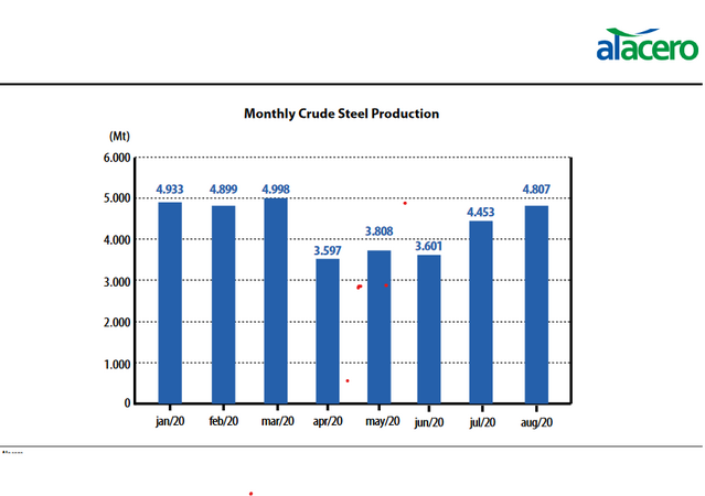 In this scenario, the numbers related to raw steel production in August maintained a positive trend, reaching a total of 4.807 million tons (Mt), which represents an increase of 7.9% when compared to the previous month (July 2020).